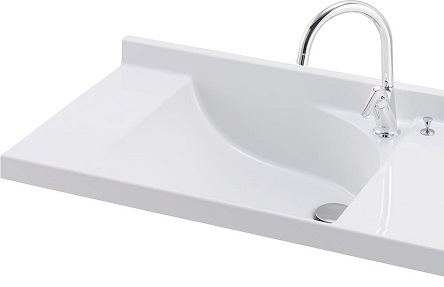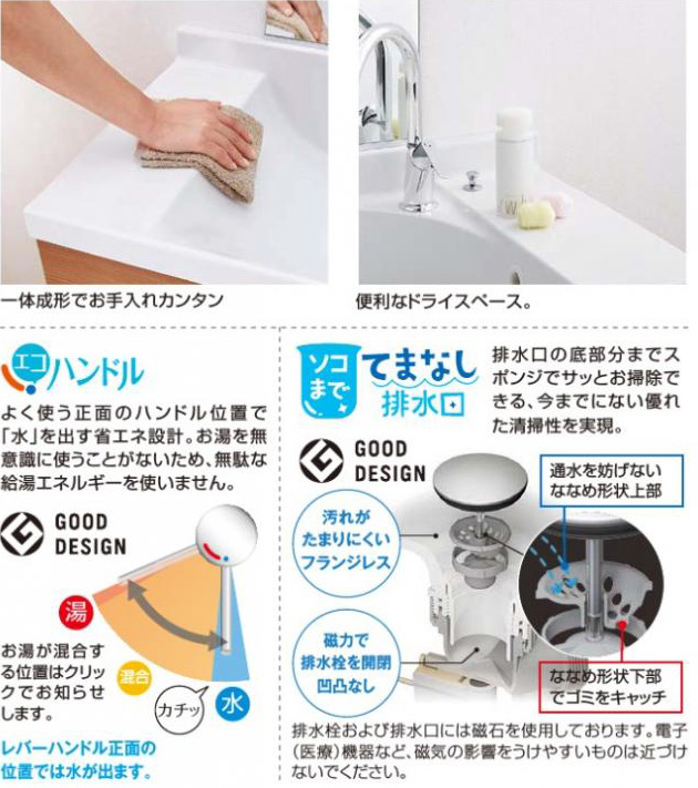 ボウル一体タイプなので見た目もスッキリ、お手入れも簡単。便利なドライスペース付きです。